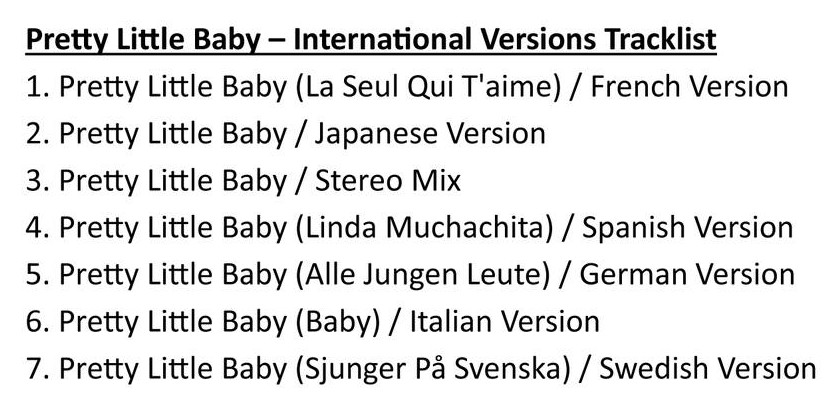 “Pretty Little Baby” was one of 40 songs Francis recorded during several recording sessions over four days in August 1961, according to her 2017 autobiography Among My Souvenirs: The Real Story Vol. 1. The track landed on her Connie Francis Sings Second Hand Love & Other Hits album.