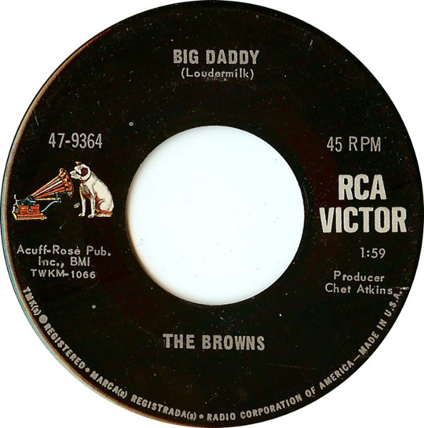 Unfortunately, RCA Records sat on the tape for 18 months and by the time they released this single The Browns had already disbanded.